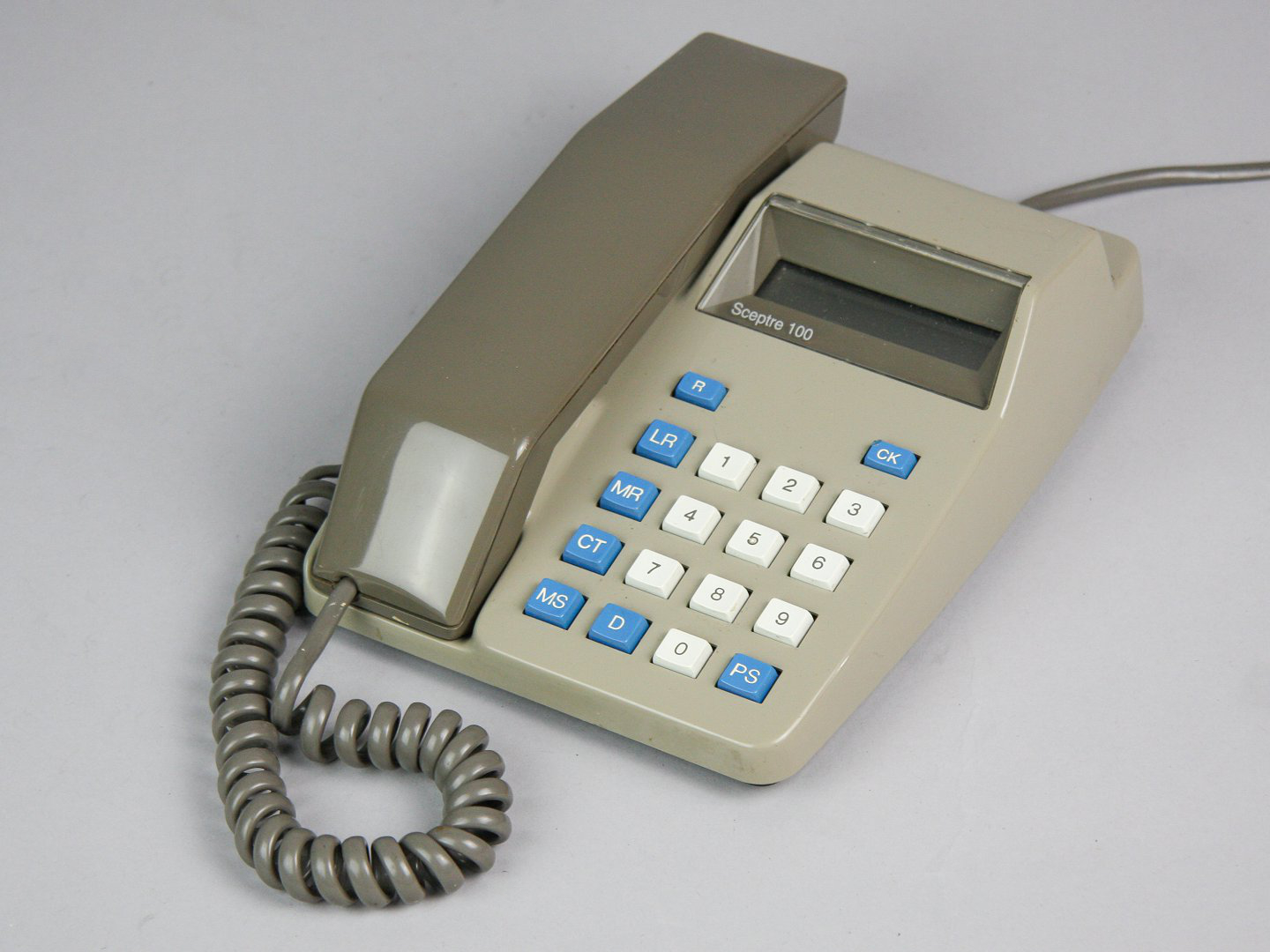 If the Ambassador, Statesman, Viscount etc seemed fairly straightforward phones, the Sceptre was intended to be different and more up-market. Designed by BT from an experimental phone of 1979 called the Microtel, this phone was amongst the first to have a display and the first to be driven by a micro-processor. When not in use, the display showed the time. Apart from the fairly normal 10 number memory, it also featured a call timer. The model shown was built at BT’s Cwmcarn factory, though a number of outside firms also produced it, including Denis Ferranti Meters and Austin Taylor Electrical.