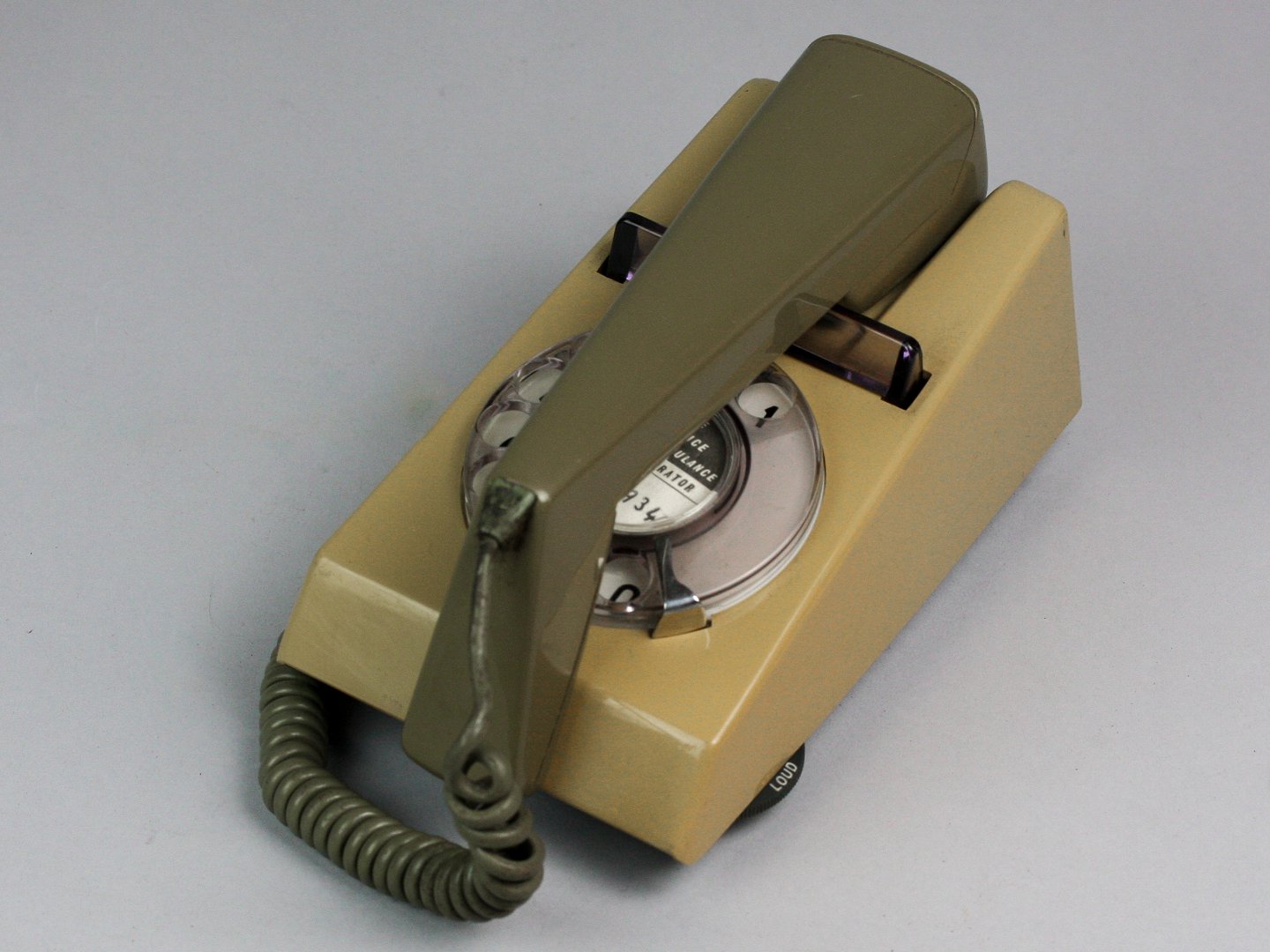 The Post Office were not insensitive to the growing number of alternative telephone designs that were emerging. In 1965, it adopted the Trimphone for premium residential use. It was designed by STC, who called it the Deltaphone. A novelty was a tone ringer in place of a bell, which increased in volume the longer the phone was rung. The hook-switch doubled as a carrying handle. The Trimphone was not capable of supporting plan set working and its uniform tone ringer sound made it unsuitable for open plan offices. But its most famous drawback was its light weight, which required one to hold the telephone base when dialling – something that wasn’t easy to do when the handset could not be cradled on the shoulder as earlier designs could be. This was rather an ‘own-goal’ by the Post Office, since it insisted on using its traditional dial mechanism rather than the low torque Italian dial that STC had intended should be used. Another problem was that the handset was hollow with the microphone close to the earpiece, so if one wanted to speak without the other party hearing, one had to cover both ends of the handset. A triumph of design over utility!