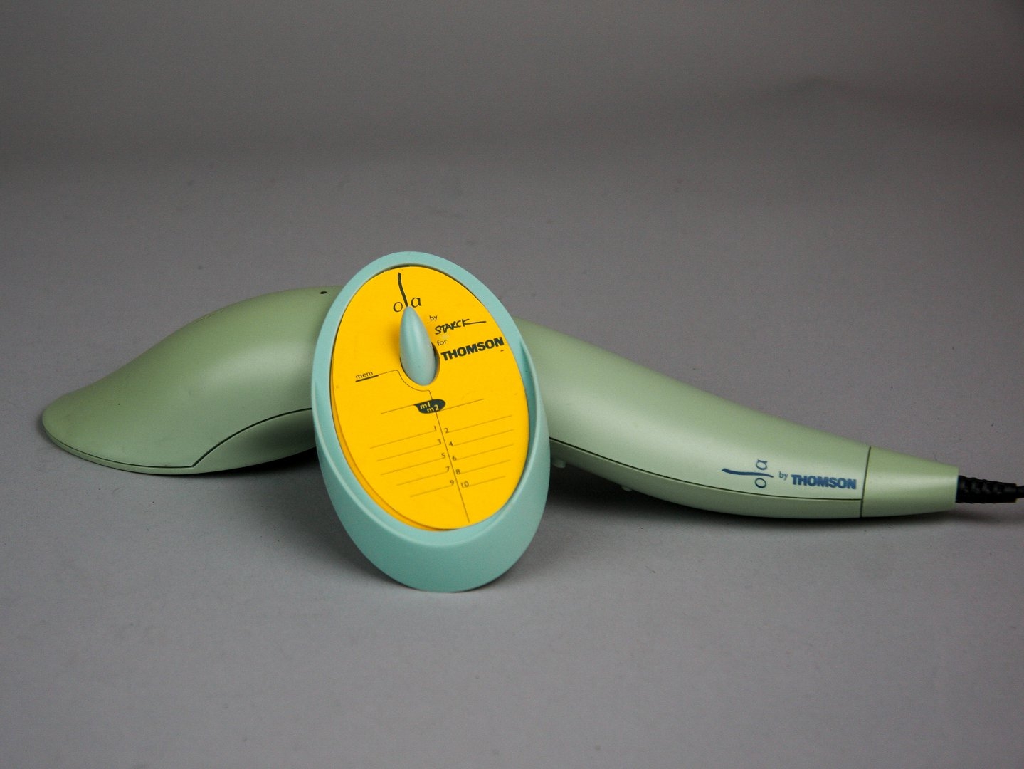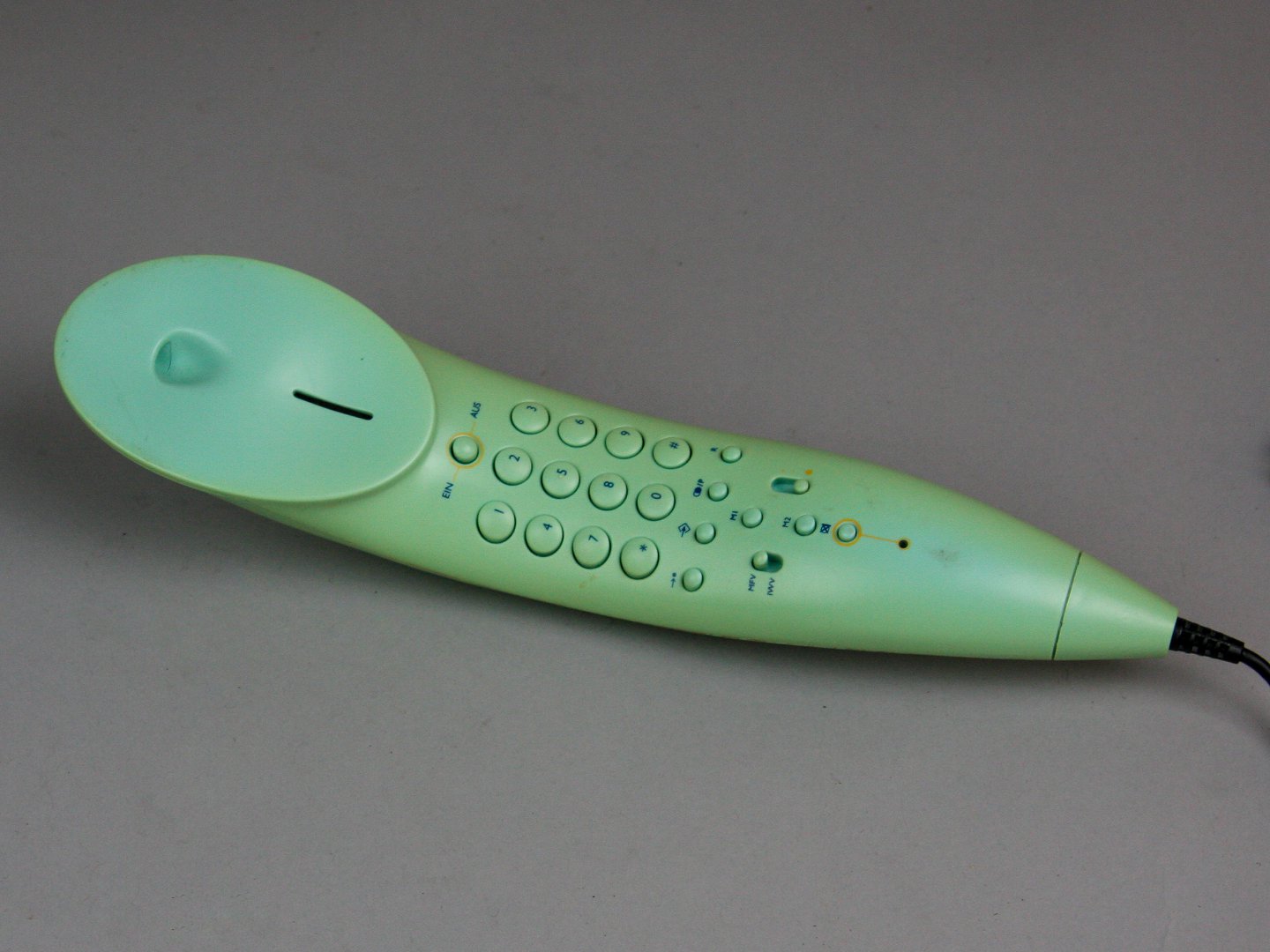 A designer phone for the weird 1990s, the Ola was designed by the ultra-trendy Philippe Starck. Unusually for a fixed line phone, there is no hook switch – the phone is switched on by a button and the hanging hook is purely passive.